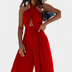 Relajado pero impactante, el mono Jessica redefine el estilo vacacional con su escote halter cruzado y silueta fluida de pierna ancha. El diseño sin espalda aporta sensualidad moderna, mientras que su tejido ligero y caída elegante lo hacen perfecto para climas cálidos y días con actitud.