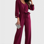 Ariane Mono de Pierna Ancha con Escote en V y Cintura con Lazo