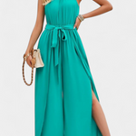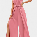 Nyree destaca con un corte moderno y elegante que resalta tu silueta con confianza. Su diseño asimétrico con una sola manga y abertura lateral aporta un toque vanguardista sin dejar de ser sofisticado. La pernera recta alarga visualmente la figura, mientras que el lazo en la manga añade un detalle chic y distintivo.