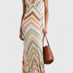 Encanto artesanal en una silueta fluida y sofisticada. El vestido Agustina destaca por su delicado encaje y su motivo zigzag, creando una textura ligera que realza cada movimiento. Su escote en V aporta un toque elegante y femenino, mientras el diseño largo envuelve la figura con naturalidad y distinción.