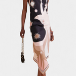 Rosenda Vestido con Espalda Abierta y Estampado Abstracto