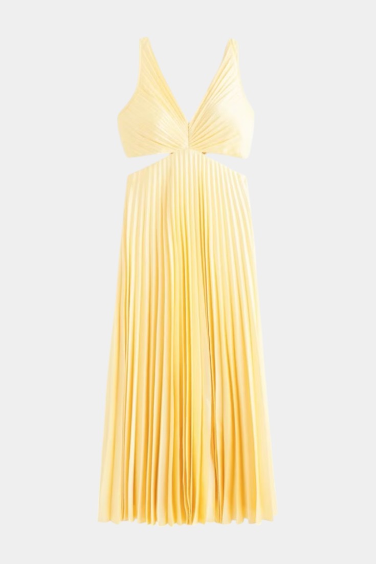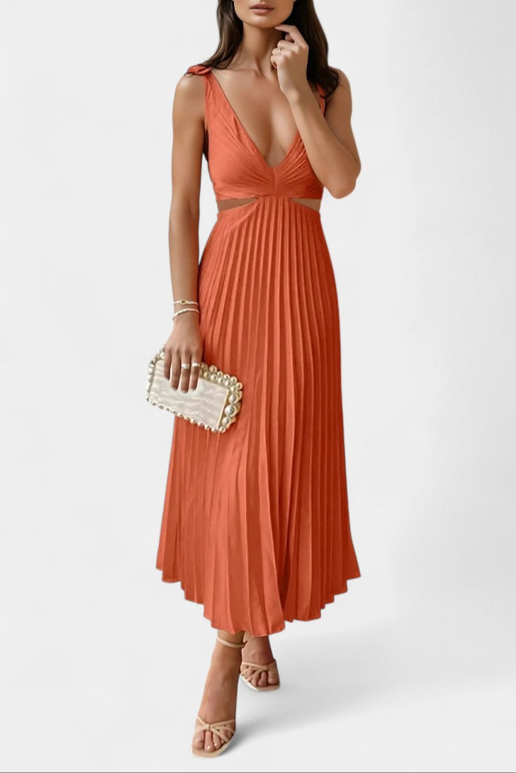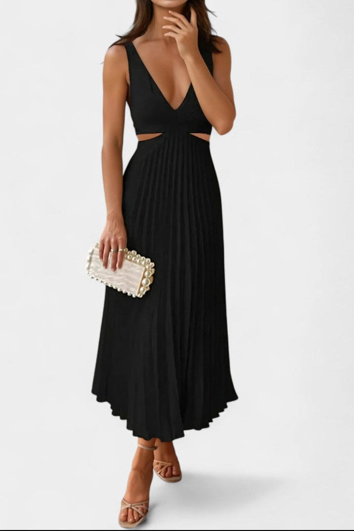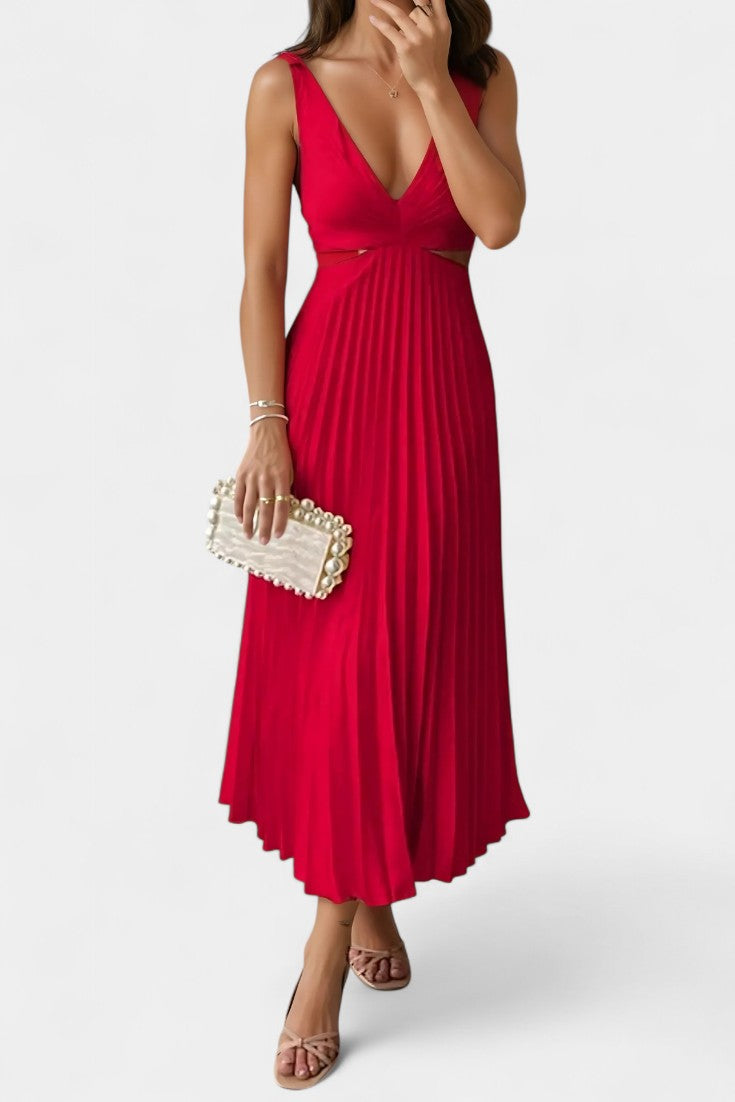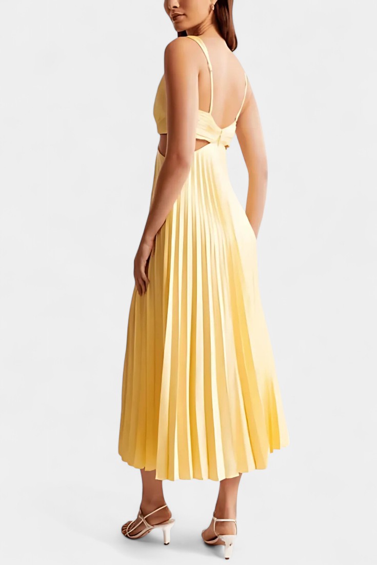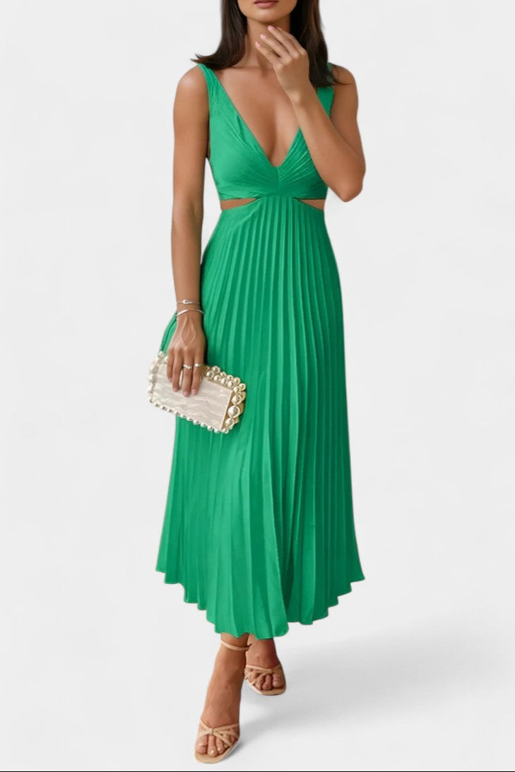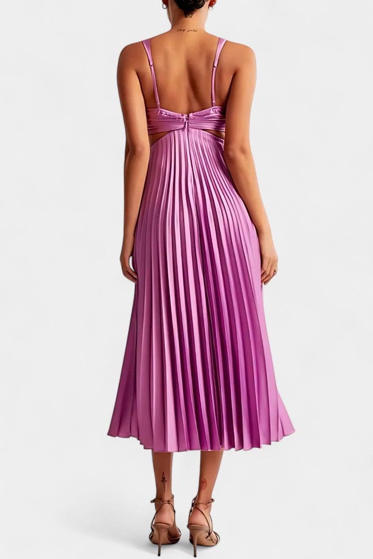 Selena Vestido Sin Mangas Plisado con Corte Lateral y Detalle Torcido