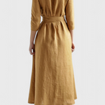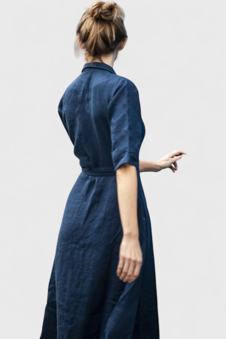Sharon Vestido Midi Vintage de Algodón y Lino con Cuello de Solapa