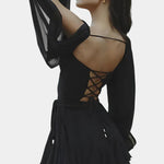 - Mangas largas semitransparentes con aberturas delicadas para un aire sutil