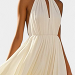 Starla Vestido Maxi Halter Plisado con Detalles de Perlas