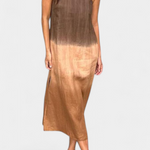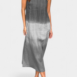 Diseñado para la comodidad sin renunciar al estilo, este vestido sin mangas es la elección perfecta para los días cálidos. Su corte relajado y ligero te ofrece libertad de movimiento, mientras que el efecto tie-dye degradado y la abertura lateral aportan un aire moderno a tu look diario.