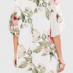 Ligereza etérea con un diseño que abraza la feminidad con suavidad y frescura. El vestido Tameka combina la fluidez de la gasa con un estampado de pétalos sutiles, creando una silueta romántica y envolvente. Sus mangas transparentes y su escote cruzado añaden un toque delicado que se mueve con gracia y naturalidad.