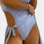 El vestido Teuta combina una silueta esculpida con detalles funcionales y modernos. Su escote sin tirantes resalta con elegancia, mientras el bodysuit interior aporta soporte y estructura. El lazo lateral ajustable define la cintura con un aire coqueto, y la abertura alta añade fluidez con un toque dramático.