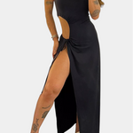 Teuta Vestido Sin Tirantes con Lazo Lateral y Abertura Alta