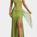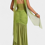 Therese Vestido Largo de Milk Silk con Escote Profundo y Fruncido Esculpido