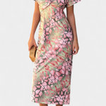 Original, fresco y con carácter, el vestido Triana canaliza una elegancia creativa ideal para el verano. Su escote en V alarga visualmente la silueta, mientras que el estampado abstracto convierte cada paso en una declaración de estilo moderno.