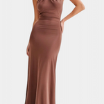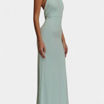 Seducción refinada con una silueta que abraza cada curva con intención. El vestido Trinity combina un escote halter elegante con fruncidos estratégicos que esculpen la figura. Su espalda baja descubierta y corte maxi ajustado crean un look potente y sofisticado para ocasiones que exigen presencia.