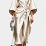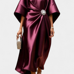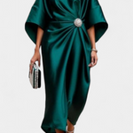 Sofisticación en cada movimiento. El vestido Ubelia deslumbra con su acabado satinado, silueta elegante en corte A y detalles fruncidos que realzan la figura con sutileza. Su escote barco y mangas midi aportan un equilibrio perfecto entre sobriedad y feminidad.