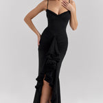 Robarás la atención en este elegante vestido maxi sin mangas, que presenta un escote en forma de corazón, una cintura alta estructurada y una falda de volantes fluida. Con un estilo grácil y favorecedor, Roxanne está diseñado para deslizarse con elegancia en cada ocasión memorable.