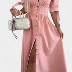 Adelina Vestido Midi de Denim con Botones y Escote en V