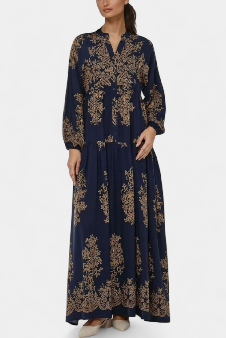 Yaiza Vestido Maxi con Aire Bohemio y Estampado Vintage