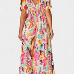 El vestido Yuki captura la esencia libre del estilo bohemio con un vibrante estampado tie-dye en tonos rosados. Su escote en V y silueta alargada realzan la figura con sutileza, mientras que la abertura lateral añade un toque atrevido. Perfecto para destacar con ligereza y confianza en días soleados o escapadas con estilo.