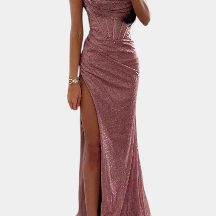 Ariel Vestido de Sirena con Lentejuelas Off-Shoulder