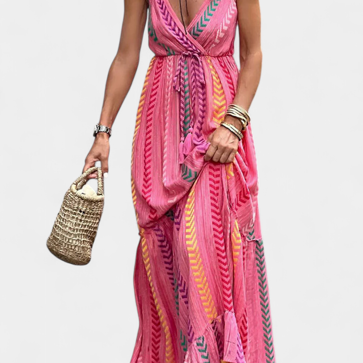Asunción Vestido Largo Rosa de Rayas Multicolor