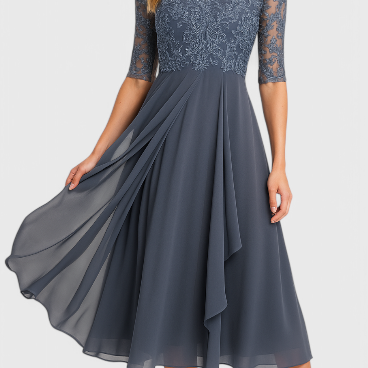 Abby Vestido Midi con Escote Ilusorio Bordado