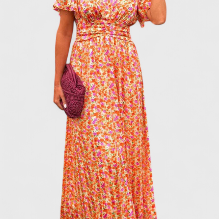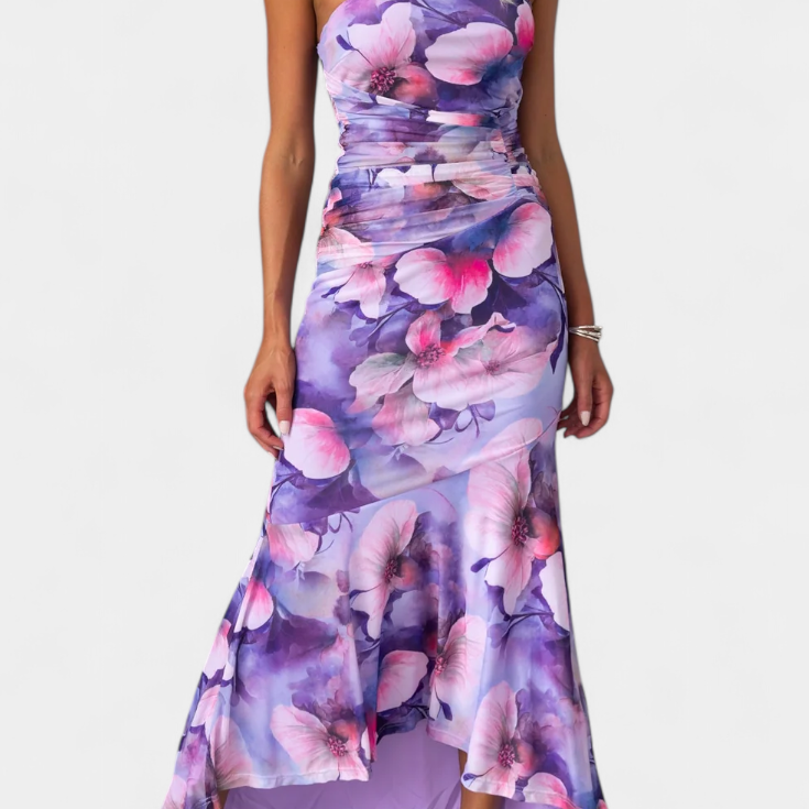 Aísha Vestido Largo Floral con Corte Fluido y Motivo de Hojas