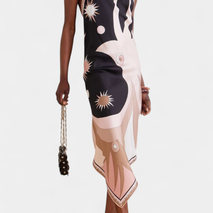 Rosenda Vestido con Espalda Abierta y Estampado Abstracto