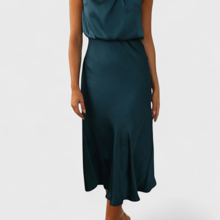 Rina Vestido Elegante de Cuello Halter Drapeado