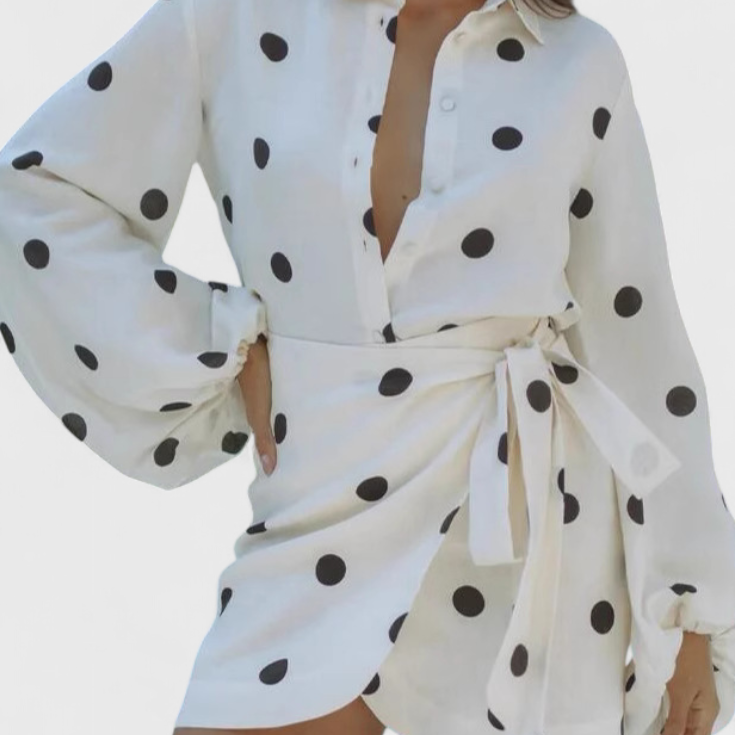 Romara Vestido Mini de Lunares con Manga Larga y Cintura Entallada