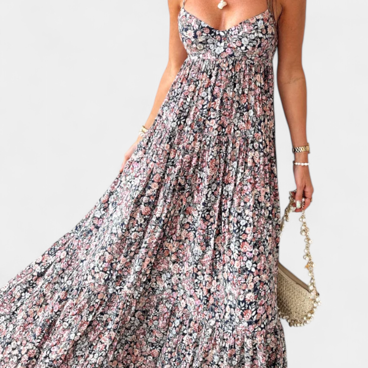 Reyna Vestido Maxi Floral con Espalda Abierta