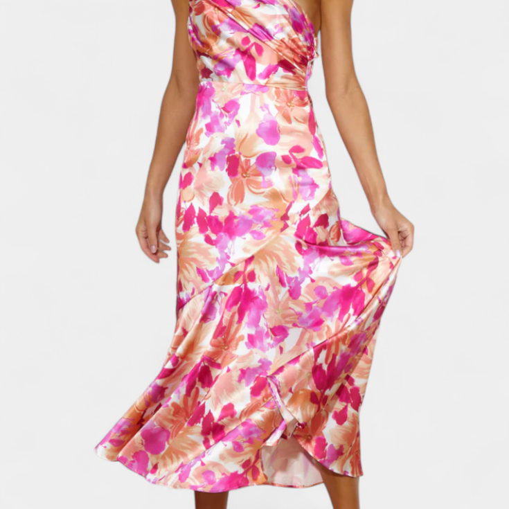Reya Vestido Asimétrico de Un Hombro con Estampado Floral