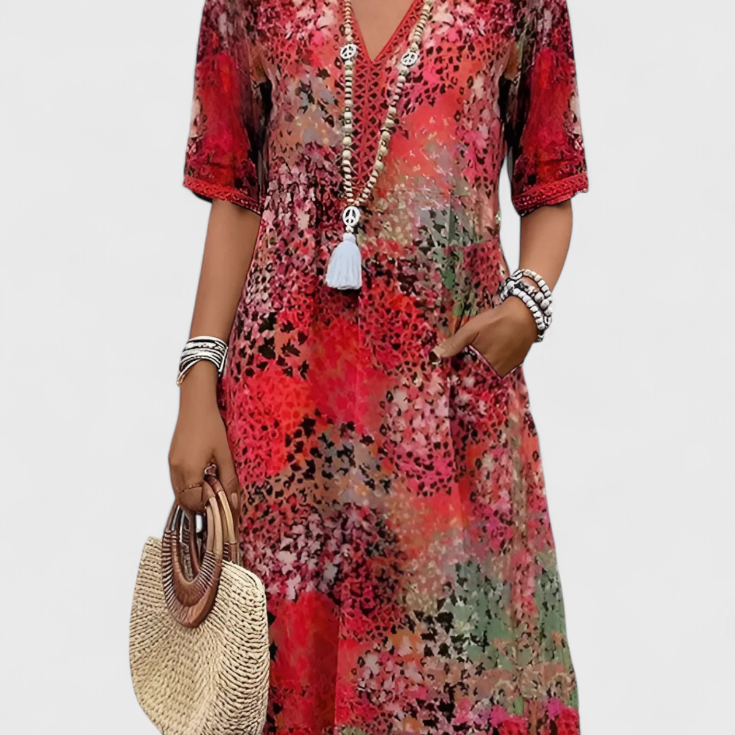 Perla Vestido Boho con Estampado Floral y Detalles en Crochet