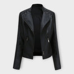 Una chaqueta de cuero moderna con una silueta elegante y un toque de sofisticación atemporal. Ideal para quienes buscan versatilidad y estilo en su guardarropa, se adapta a cualquier ocasión.