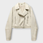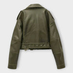 Chaqueta de cuero corta y moderna que se adapta a cualquier estilo. Con cinturón integrado y una estética refinada, es la prenda clave para completar looks casuales y elegantes por igual.