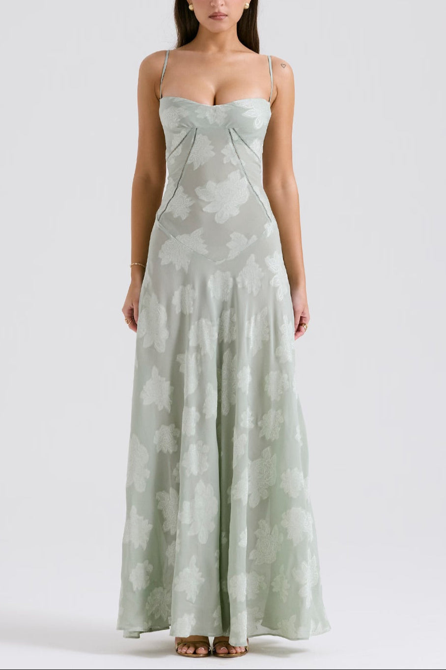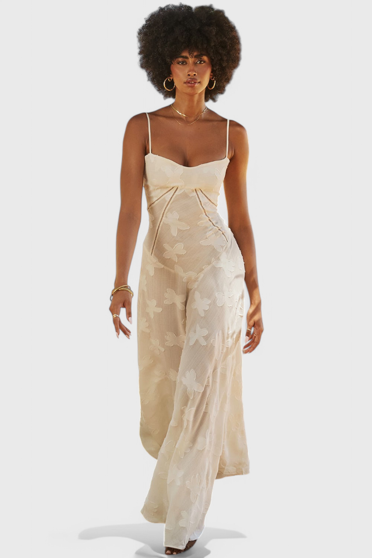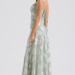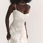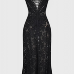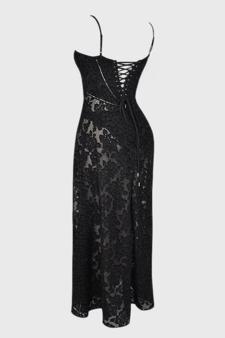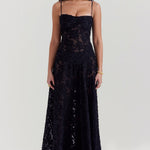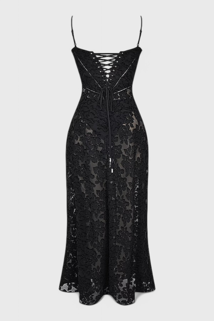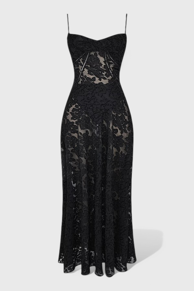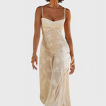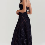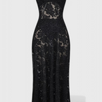 Elegante y romántico con un alma vintage, el Vestido Mabel captura la luz y la atención en igual medida. Confeccionado con lamé brillante y adornado con delicado encaje floral, cuenta con finas tirantes de rouleau y un acabado semitransparente que se siente suave y llamativo a la vez. Diseñado con copas incorporadas para un uso fácil, es la declaración perfecta para cenas a la luz de las velas, veladas chic o momentos que requieren algo inolvidable.