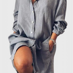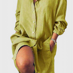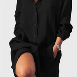 Ligero y refinado, el vestido camisa Marlene combina la frescura del lino con una silueta alargada que estiliza la figura. Su corte recto y versátil permite llevarlo abotonado para un look pulido, abierto en capas sobre otras prendas o como vestido para un estilo relajado pero sofisticado.